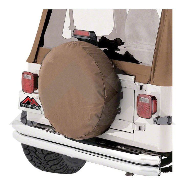 Cover Your Spare. Don't forget your spare tire when it comes time to protection. The spice-colored Spare Tire Cover is perfect for keeping your Jeep Wrangler spare tire from the elements. This cover keeps safe spare tires ranging from 30-35 inches.