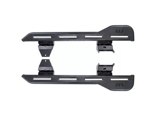 Heavy Duty and Functional. Made in the USA for the Ford Bronco 2-Door, these RTR Rock Sliders come in a matte black finish and use the stock hardware and mounting points. Featuring a tubular design crafted from 1.75-Inch DOM steel tubing, these sliders offer functional lift points and 4-inches of step for your ride.