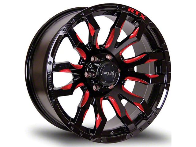 The 20x9 RTX Offroad Wheels Patton Gloss Black Red Milling 6-Lug Wheel; ; 0mm Offsetunderwent a thorough finishing process with certain coatings providing protection against environmental elements and daily wear. Aesthetically, this finish can significantly enhance the wheel's appearance, making it a standout feature.