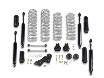 Enjoy a Smooth Ride. The Rubicon Express 2.50 inch Standard Coil Spring Lift Kit will provide your 2-door JK Jeep Wrangler with the upgrade it needs to perform exceptionally during your off-road escapades. The package offers better performance over your old factory suspension system allowing you to enjoy a bump-free ride even when cruising over rough terrains.