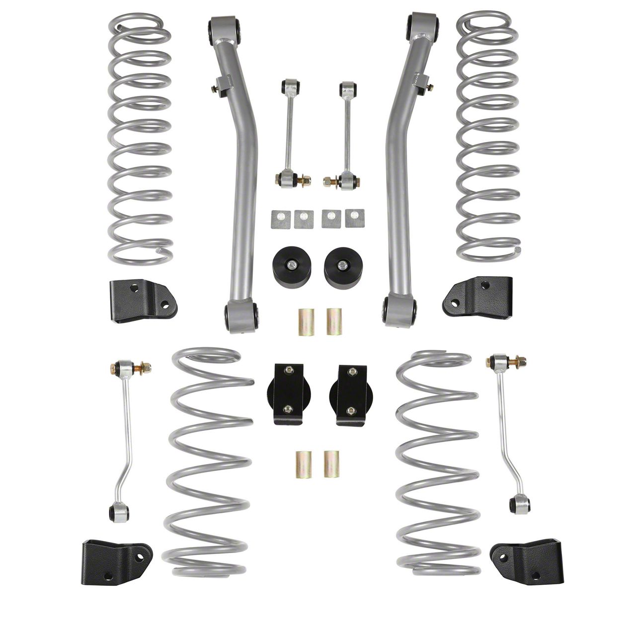 Durable Front Lower Arms. The Rubicon Express 2.50-inch Super-Ride Suspension Lift Kit also features a pair of 1.75-inch diameter 4130 chromoly Super-Ride front lower arms with ample range for enhanced performance. In addition, the kit also comes with extended sway bar end links and extended bump stops, improving your Jeep’s off-road capability.