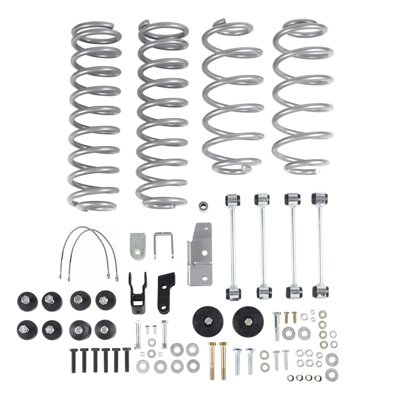 Hardcore Build. Featuring high-quality lift springs, brake lines, bushings, and control arms, this kit is guaranteed to effectively add clearance to your Jeep, allowing for better off road drives as well as customized tires. No matter where you decide to venture, this kit's heavy-duty components are designed to be up to. the task so that you can confidently focus on the road ahead.