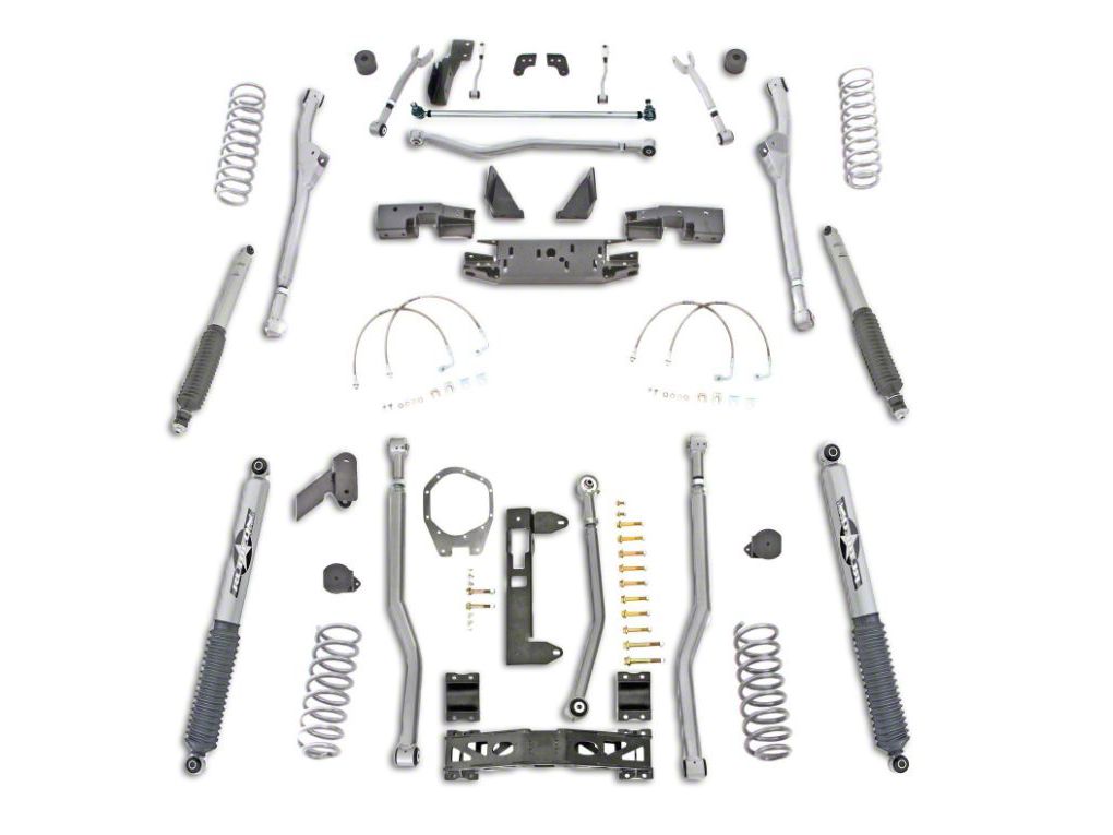 Added Flexibility On the Road. Enhance the flexibility of your Jeep Wrangler by fitting this Rubicon Express 4.5 inch Extreme-Duty 4-Link Front/Rear Radius Long Arm Lift Kit that feature a full-width transmission cross meter for an extra flex on the road. This 4.50 inch lift kit has flexible ball joints for enhanced flexibility and handling.
