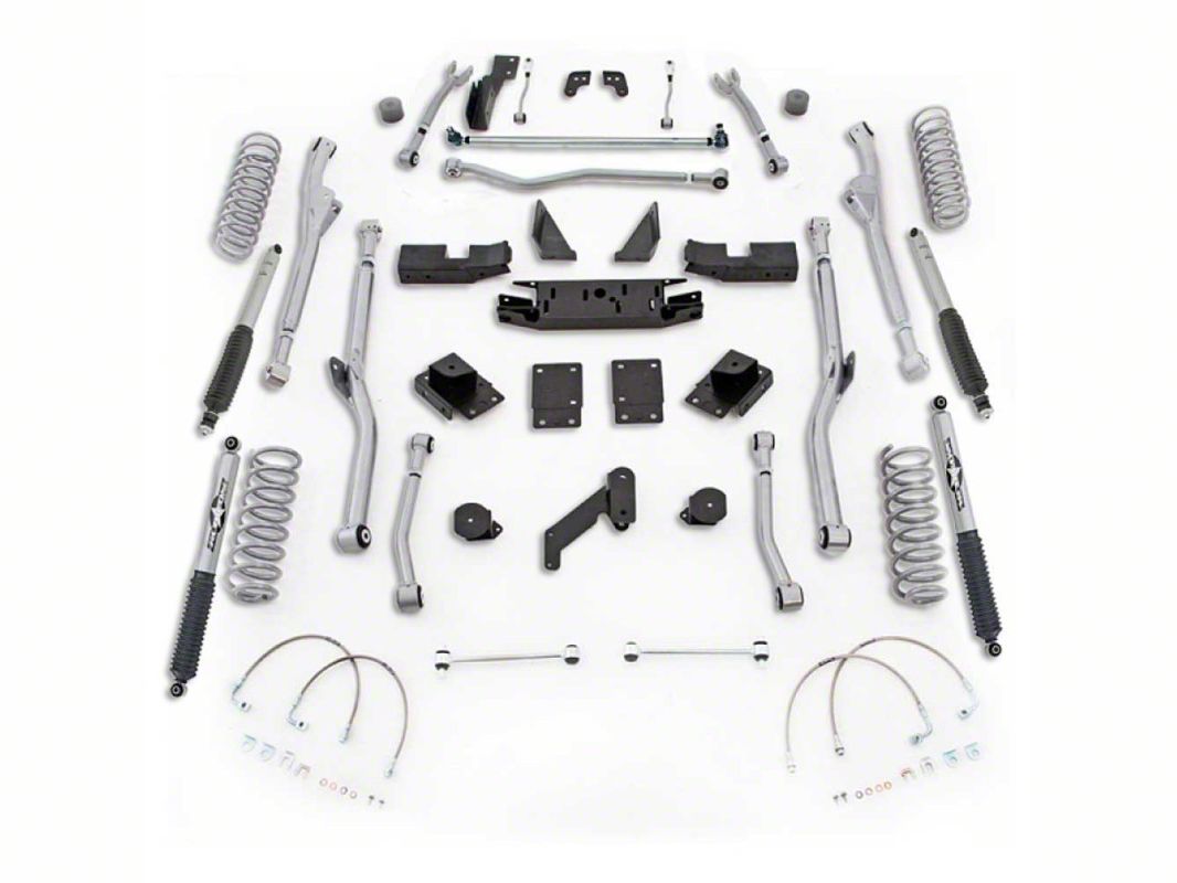 Tuned Lift Springs Included. The Rubicon Express 4.50 inch Extreme-Duty Radius Long Arm Lift Kit is made from durable steel alloy, giving it the power to absorb impact even the harshest impacts out on the trail while still keeping your ride comfortable when you're on the blacktop. This kit comes with Mono-Tube Shocks, or no Shocks. What's more, like all Rubicon Express parts, they're crafted right here in the USA.