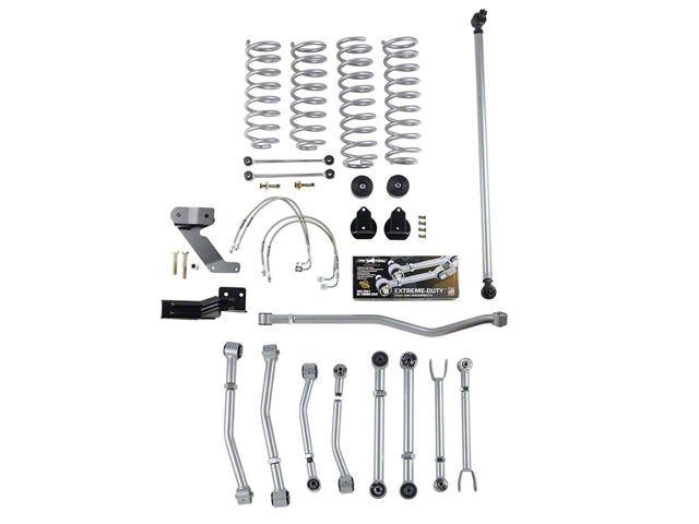 Lift Perfected. When you want the best short arm suspension system that maintains factory mounts, the Rubicon Express 4.50 inch Super-Flex Suspension Lift Kit is an excellent choice. This kit offers a lift height of up to 4.50 inches for great ride quality and stability and can handle tires up to 37x12.5. Kit includes adjustable control arms, lift springs, Super-Flex ball joints, longer brake lines and extended bump stops. This upgrade will give you the clearance to tackle the road less traveled.