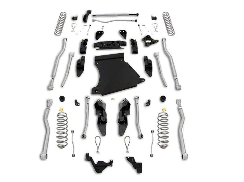 4-LINK Long Arm System. Rubicon Express 5.50 inch Extreme-Duty 4-Link Long Arm Lift Kit with,or without Shocks features a tri-link system that allows for up/down wheel travel and also enhances your Jeep’s anti-squat capabilities for better steep climbs.