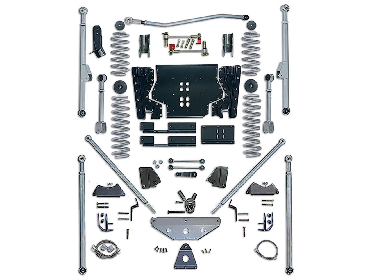 The First and Still the Best. Rubicon Express was the first to offer a long arm suspension kit for the Jeep Wrangler and out of that pioneering spirit comes their latest improvement, the Rubicon Express 5.50-Inch Extreme-Duty Long Arm Lift Kit with Rear Tri-Link and Without Shocks. With it, you get a supreme lift of 5.50-Inches, giving you improved ground clearance and better performance for off-roading and crawling.