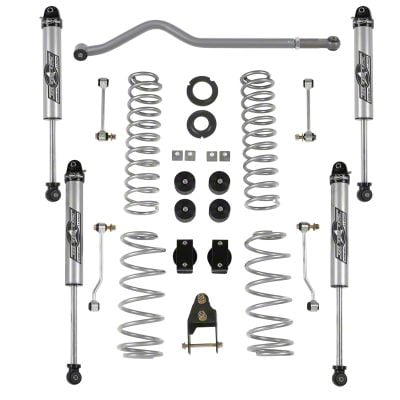 Conquer the Off-Road Trails With Confidence. This Rubicon Express 3.5-4.5-Inch Standard Coil Suspension Lift Kit With Mono-Tube Shocks is an affordable, easy-to-install way of giving your Jeep a boost in off-road performance. The 3.5-4.5 inches of increased ground clearance delivers a comfortable ride experience, both in the city and on the trails, and also creates enough space for up to 35-inch tires. It also lifts your Jeep enough to avoid minor bumps and scrapes to the undercarriage. In addition, this lift kit comes with mono-tube shocks for excellent damping, and a rear track bar bracket and extended sway bar end links for improved maneuverability even on the bumpiest trails.