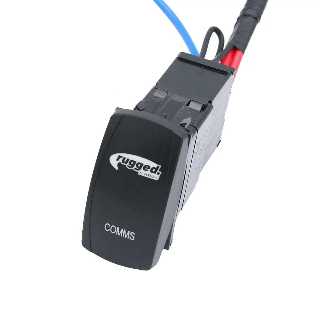 Efficient Connectivity. The Rugged Radios Rocker Power Switch is designed to streamline the operation of waterproof mobile radios and rugged intercoms. By eliminating the need for extra cables with its pre-wired rocker switch, it ensures a tidy and efficient setup. This product allows users to connect both the radio and the intercom to the same power source, simplifying the installation and usage.