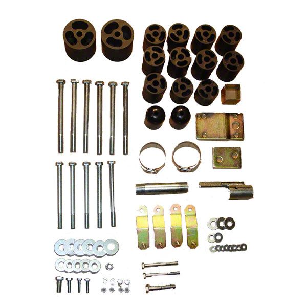 Lift Specs.Designed to accommodate for up to 33 inch by 12.50 inch tires, Rugged Ridge's 3 inch body lift kit is a must have when tackling trails where bigger wheels are needed.