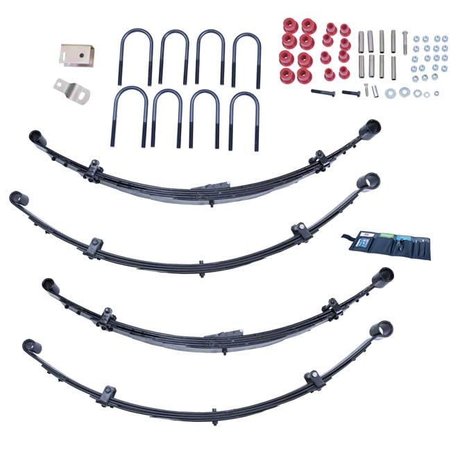 Construction and Appearance. This kit includes high-quality coil springs and shocks, engineered to withstand the demands of off-road driving. The components are built to offer better handling and support while accommodating larger tire sizes, providing a more capable and rugged off-road vehicle.