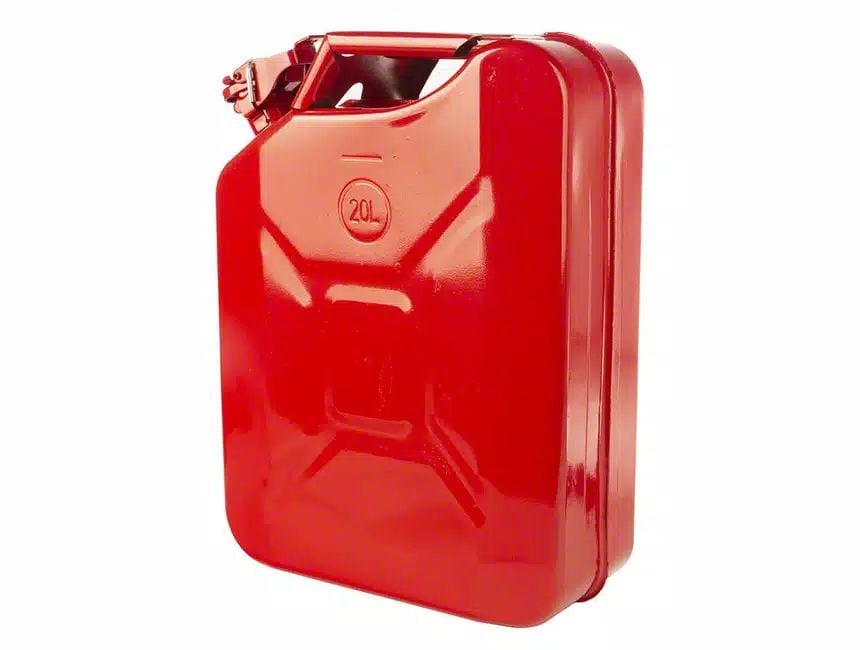 Reliable. The Rugged Ridge 20L Jerry Can can hold up to 20 liters of fuel. This helps you take more fuel so you can go farther off-road and not worry about running out of gas. With this fuel container, you can go to faraway places without being afraid of running out of gas.