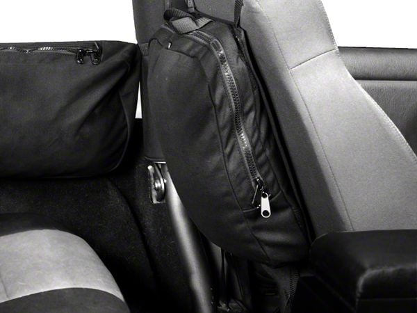 Storage Benefits. A fabric panel attaches the trail bag right to your Toyota's seat back with heavy-duty nylon straps. The bag then attaches to this panel with Velcro, providing you with an easy installation process, while the fabric base and straps remain on the seat back. The bag works with both hard tops and soft tops and last but not least is backed by a 5 year warranty for your added coverage.