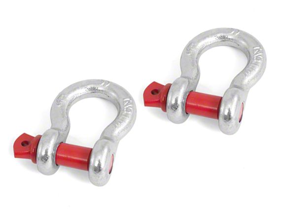Strong D-Rings. These Rugged Ridge 5/8-inch D-ring Shackles have a wide variety of uses and are made from 5/8 inch galvanized steel. Sold as a pair, these D-rings are silver and measure 4" x 4" x 2" with a red 3/4-inch diameter pin and can be stored in your vehicle just in case you need some extra strength.