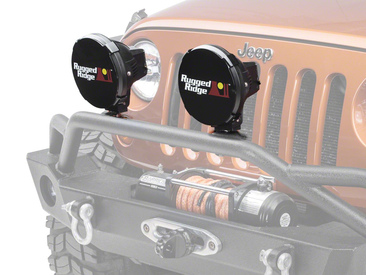 Keep Your Lights Lasting Longer. Your Wrangler's off-road lights will last longer when you add the black Rugged Ridge Ridge 7" Halogen Off-Road Light Covers. The dark covers are made of high-quality resin and strongly feature the Rugged Ridge logo so you can ride in style while knowing your lights are safe. These light covers complement the rest of your Jeep's bumper with its bold look.