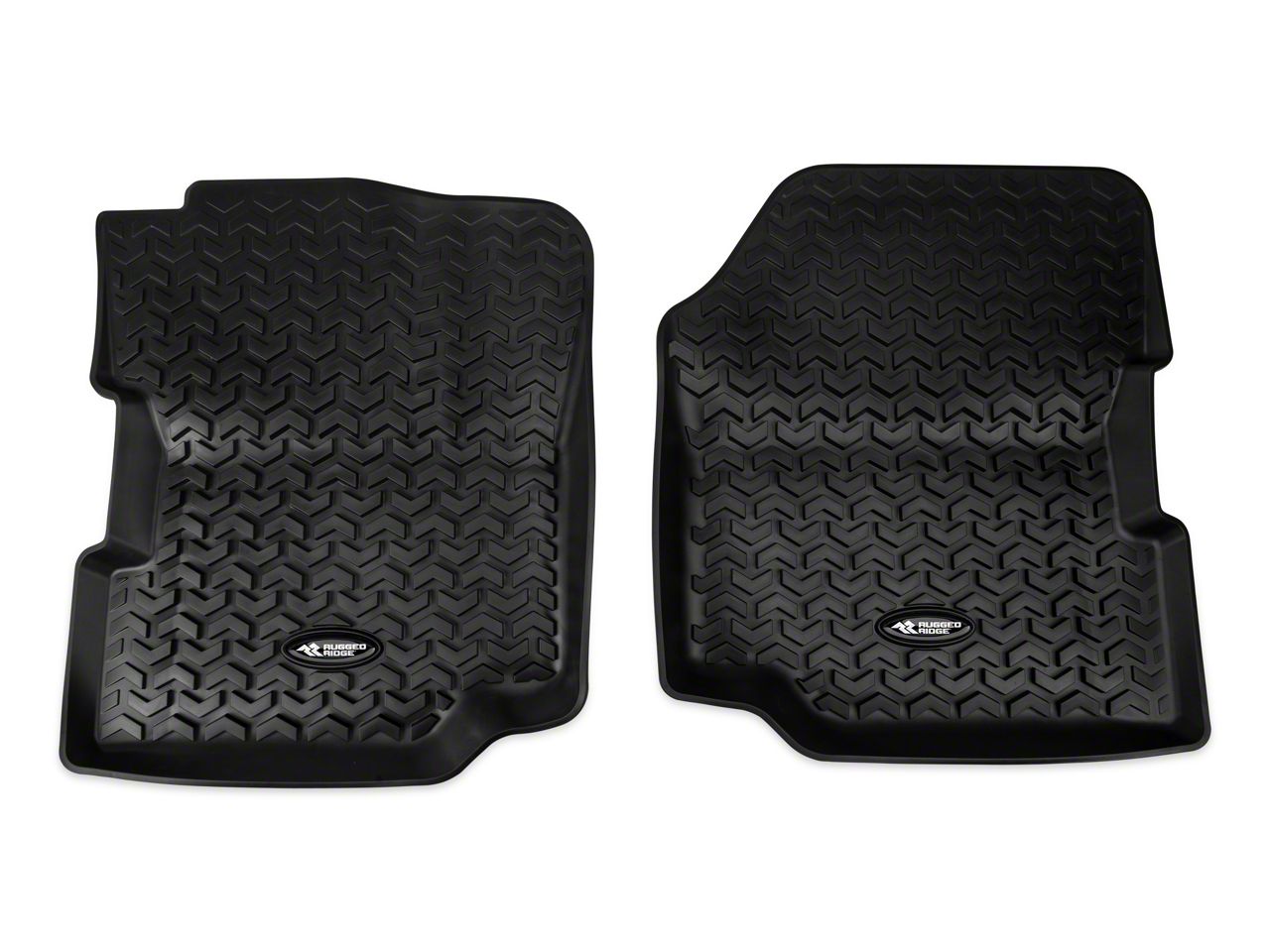 Smart Design. Keep your vehicle's floor free from dirt and water with the Rugged Ridge 12920.21 All-Terrain Floor Liner Front. It features a deeply molded, chevron-shaped tread pattern to efficiently channel away dirt, water, and snow. The floor liner adjusts itself to the shape and contours of the vehicle's floor to offer a perfect fit. It includes raised nibs on the bottom to keep it firmly in place. The high-perimeter walls provide maximum containment and enhanced interior protection.