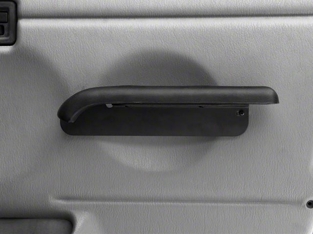 Construction. Get rid of those pull straps and replace them with this: the Rugged Ridge arm rest pad. Soft padding comforts your arm as you ride along in your TJ and they're supported by strong brackets. The vinyl coat protects the inner layer from everyday mishaps and the black color matches well with any color Wrangler.