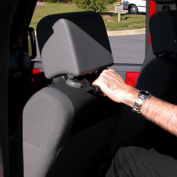 Accessories & More. No tools are needed to do the job. The handle mounts directly onto the head rest on your Wrangler's seats. These handles also has a 5 year limited warranty.