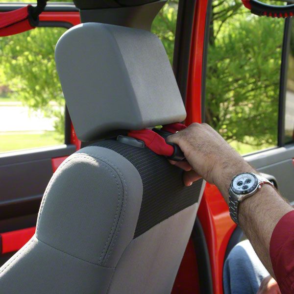 Application. Attaches to the front head rests of 2007-2026 Wrangler JK and JL models with ease.