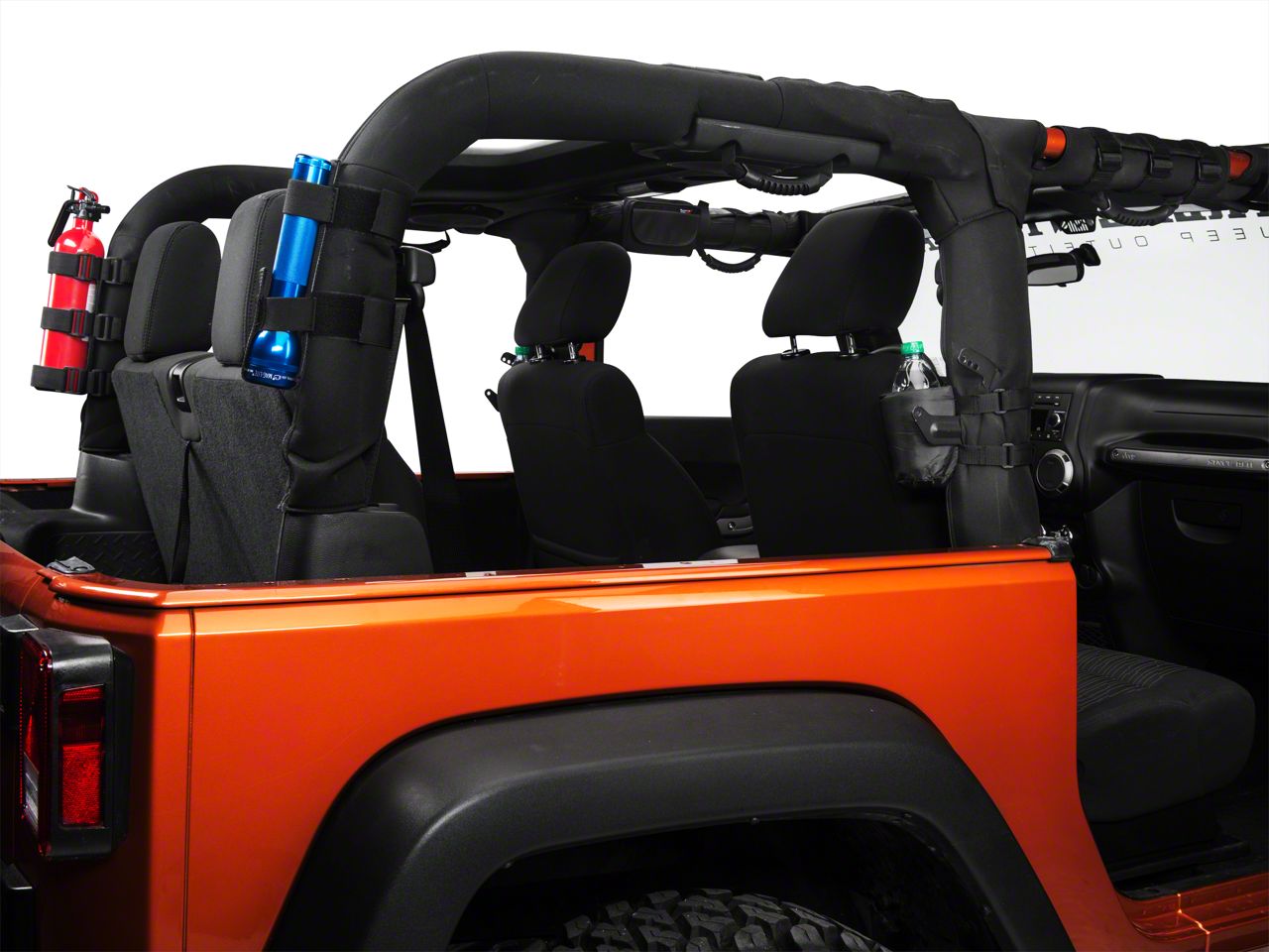 Construction. This bundle from Rugged Ridge turns your JK's protective roll bars into storage space for comforts and safety equipment. Heavy duty Velcro straps hold the accessories to the roll bar, keeping them at hand when you need them most.