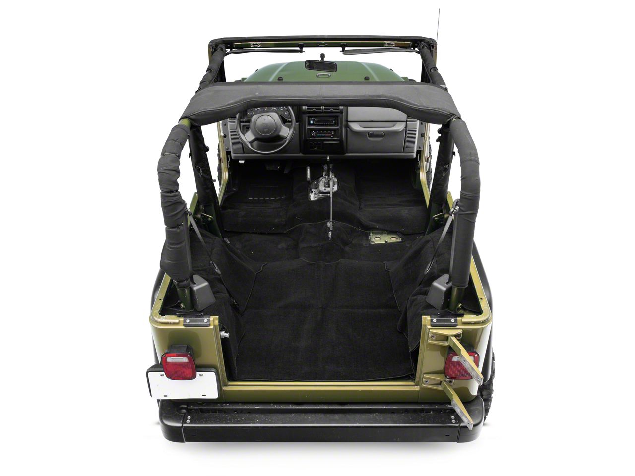 Application. This auto carpet kit is designed for 1997-2006 Jeep Wrangler TJ Models, Excluding Unlimited. The full interior design includes a wheel well coverage.