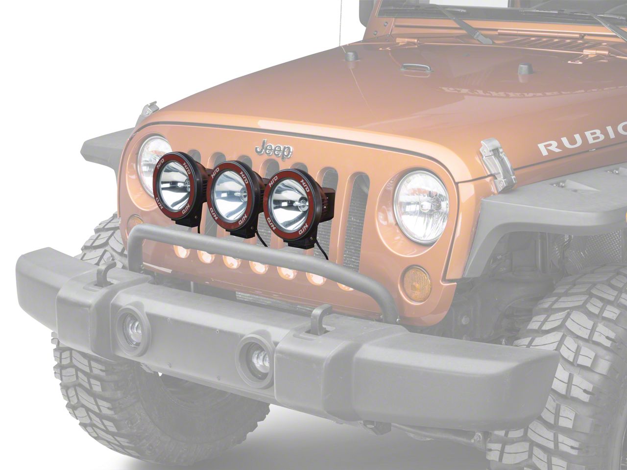 Construction. With this HID light kit from Rugged Ridge, your JK will be able to illuminate the night. The kit is made from a ABS plastic which houses the HID lights with a black powder coat finish is used for the bumper mounted light bar. The lights feature water-proof connections, impact resistant covers and an internal ballast. The HID lights use 65% less power (watts) then a standard 100 watt fog light does while being 2-1/2 times more powerful then halogen bulbs. The lights mount to the light bar with a reinforced multi-directional mounting base for a secure fitment. The light bar is mounted on the bumper and features easy installation, no bumper removal or drilling needed.
