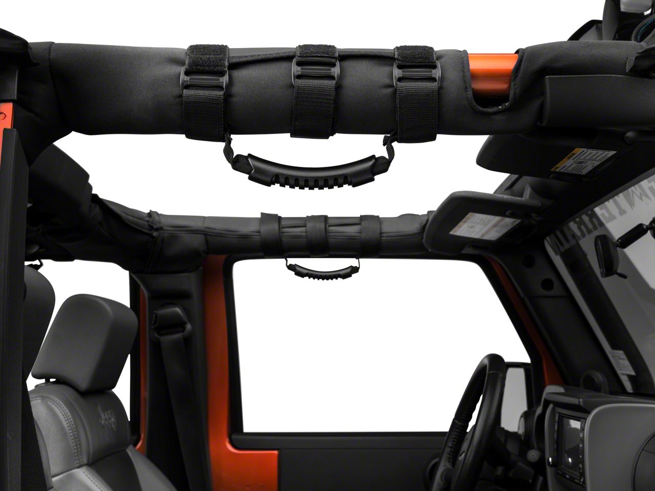 Easy Installation. Grab handles in this Jeep Wrangler JK handle kit can be easily attached to the roll bar with heavy-duty Velcro or can be fastened to factory mounting points. They are suitable for use with 2007-2018 Jeep Wrangler JK models.