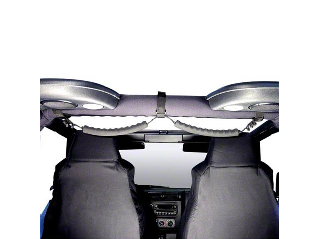 Convenient Functionality. Introducing the Rugged Ridge Rear Dual Grab Strap! This tough product is made of nylon webbing and features molded foam handles for a guaranteed comfortable grip. Best of all, it has special side pockets to hang clothes or other gear.