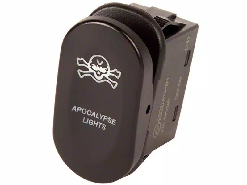 Style and Function. If you want to add a little flair to your Bronco's interior lighting then the Rugged Ridge 2-Position Rocker Switch with Apocalypse Logo will deliver the custom look your craving. Featuring a cool, laser-etched LED indicator with the apocalypse logo, this cool rocker switch will definitely be a conversation starter for all your road trips.