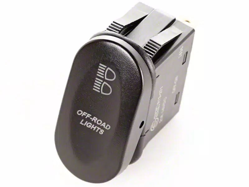Off-Road Design. Not only does the Rugged Ridge 2-Position Rocker Switch make it easy to control your off-road lights, but it gives the inside of your vehicle a tough look. With a laser-etched off-road logo, this switch takes your interior from boring to aggressive. Show your serious passion for off-roading with this durable switch, backed by a 5-year warranty for guaranteed quality.