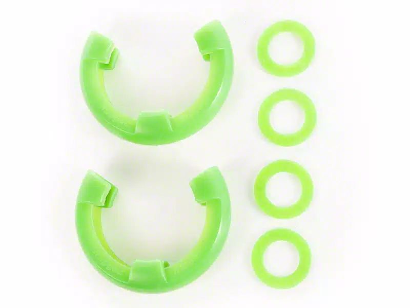 Stops the Banging and Clanging. Rugged Ridge 3/4-Inch D-Ring Shackle Isolators are an important part of your vehicle recovery equipment. Unfortunately, they can cause a lot of noise and possibly ruin your bumper’s finish. Rugged Ridge 3/4 in. Green D-Shackle Isolators can help prevent both issues by cushioning your D-ring shackle. It snaps on the D-shackle’s outer perimeter. And to prevent the D-shackle from clanging against the mount, it also comes with a set of washers for complete protection.