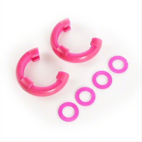 Drive without the Obnoxious Noise. D-ring shackles are an important part of your Sierra’s equipment whether you use it for off-road adventures or work. However, when unused, the D-shackles can make an obnoxious noise as it bumps and clangs against your bumper or its mounting. This pair of Rugged Ridge 3/4 in. Pink D-Shackle Isolators prevents the D-shackle from making metal-on-metal contact and thereby eliminates the noise. It comes with a pair of isolators that snaps on a D-shackle’s outer perimeter and washers that separate the D-shackle from the mount.