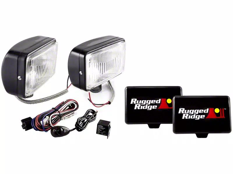 Light Up The Trail. Made to take on the trials of off road use, the Rugged Ridge Rectangular Halogen Fog Light Kit is the ideal answer for upgrading lighting on your Bronco. Featuring brilliant 12V, 100 watt halogen bulbs, this kit will easily take on the elements, providing ample lighting through the worst of conditions. Measuring 5 by 7 inches, these rectangular lights easily fit bumpers, bars and universal mounts like for an easy upgrade.