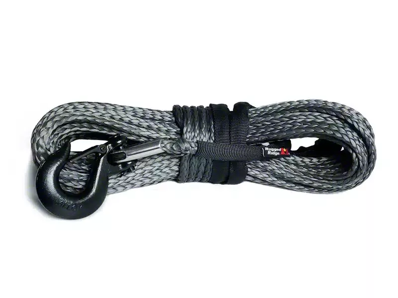 Technological Innovation, Increased Performance. You can count on the high-tech synthetic fiber to hold up during tough jobs. Rugged Ridge includes an abrasion reducing chafe guard that increases line longevity and reduces breaks. A protective sleeve prevents overheating on the winch drum, and each line comes with a black, powder coated latch hook and safety thimble.