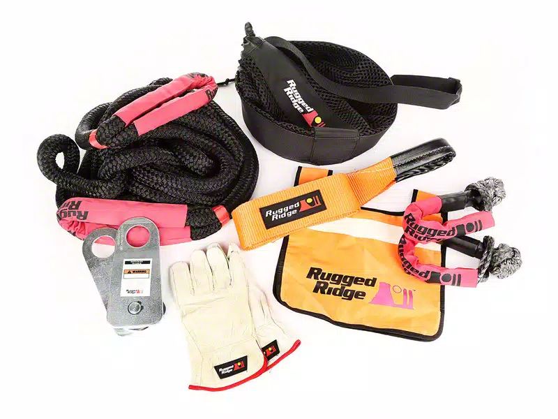 Recovery Power. When you go off road to tackle the toughest trails, there's always a possibility that the adventure may turn into a recovery mission. So, make sure you have Rugged Ridge's Premium Recovery Kit with Mesh Bag in your 1966-2026 Jeep CJ and Wrangler so that you can barrel into unknown territory with confidence.