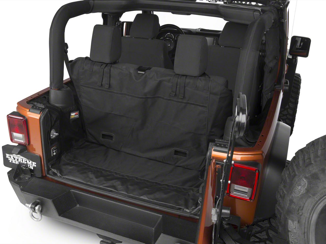 Clever Design. Transport items in the back of your Jeep without worrying about making a mess or damaging any components. This cover is water resistant and thick enough to guard against gouges or scratches. The front curtain wall creates a barrier to keep pets from climbing into the front seat area, while a flip-out flap prevents debris from getting into the gap in the tailgate section. Installation and removal is incredibly quick, so you can use the cover as needed.