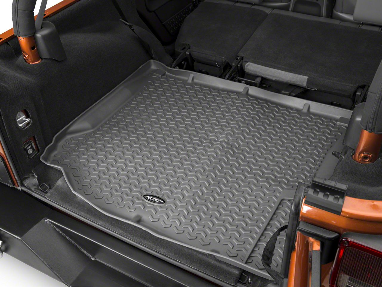 Specs. This liner is protected by a limited lifetime warranty and is suitable for use in 2007-2010 Jeep Wrangler JK models. The high perimeter walls and deep tread help to contain water, mud, dirt, spills of chemicals, and small objects inside the liner, keeping the carpets beneath pristine. The reverse side features numerous molded nibs to keep the insert from sliding back and forth. The entire cargo area floor is covered, up to the backs of the seats.