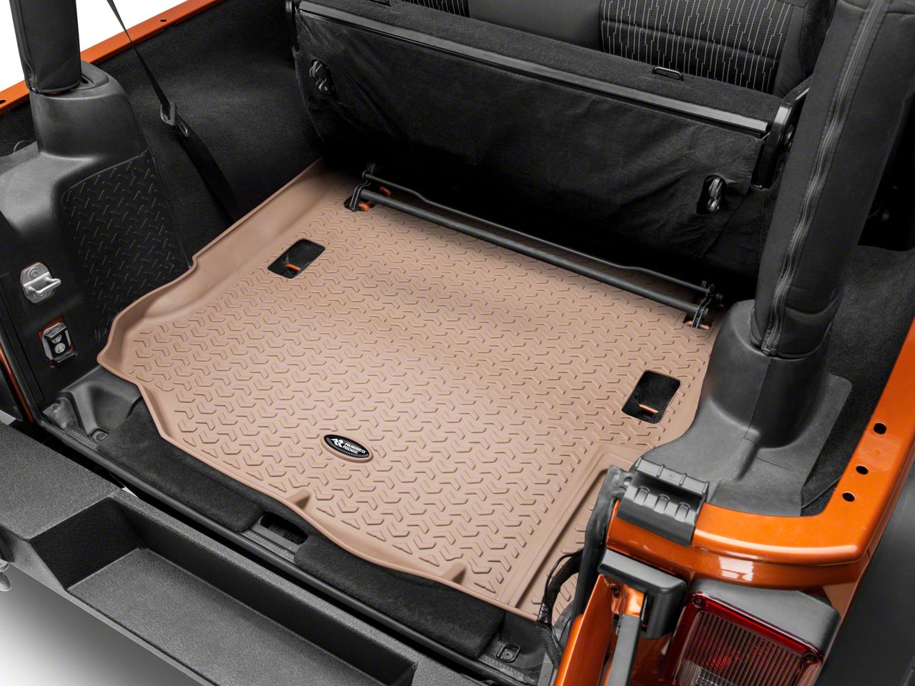 Construction. Protect your Jeep's cargo floor from water, mud and snow with the Rugged Ridge tan cargo liner. Made from a durable thermoplastic material, this liner will take any damage nature throws at it, keeping your floor flawless. The liners will not fade in the sun or tear from use, making sure it looks as new as the day you bought it.