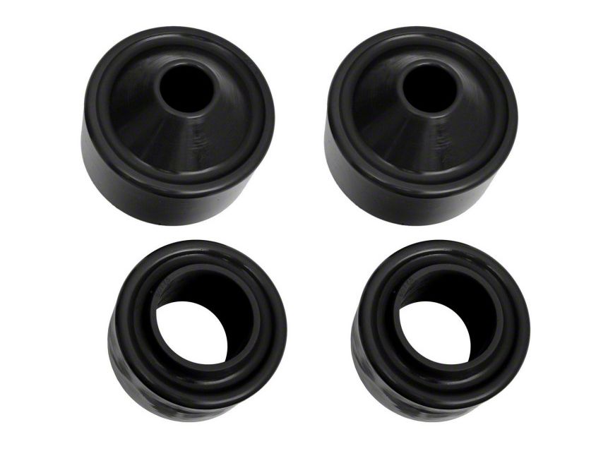 Durable Construction. These Wrangler coil spring spacers are made from heavy duty black polyurethane for extreme durability. Designed to take on the rigors of the road these spacers maintain your factory ride for reliable quality. This set is backed by Rugged Ridge with a 5 year limited warranty for full security.
