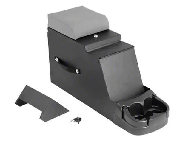 Storage Benefits. Inside you can lock up your stereo for the peace of mind in that your sound system is safe and secure and at the same time, outside you get tons of additional storage options. There's a place for your cell phone, a special compartment for sunglasses, and even an area for loose change. Of course there are several cupholders too, both of which are adjustable to fit a wide range of mug and cup sizes. This is a product that adds both security and utility.