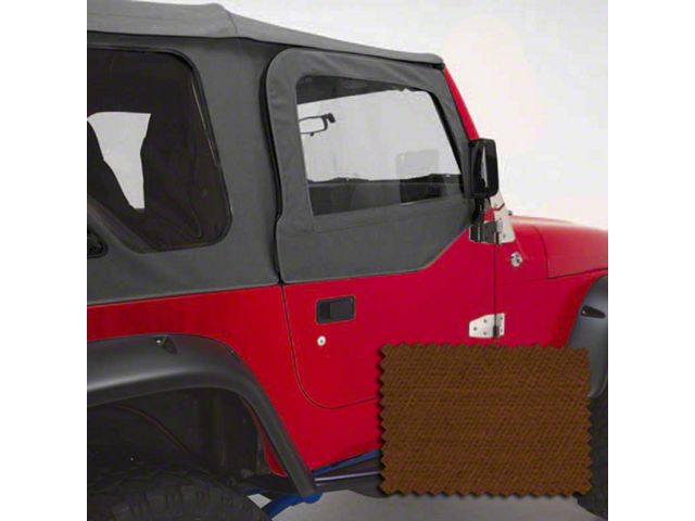 Construction. Rugged Ridge brings you these tan door skins which are made from durable, UV treated material to ensure these skins look as good years from now as they do the day you take them out of the box. A heavy duty bulb seals keeps you away from the elements, and the 30 mil windows are durable, strong, and the right size. Hook and loop fasteners help ensure that your doors are safe and secure, and double zippers add even more protection. Put simply, while these skins are a great looking factory upgrade from the original door fabric, they're more than just a pretty face.