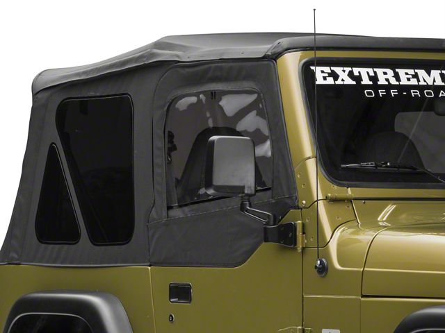 Quality Construction. These door skins in diamond black by Rugged Ridge is an aftermarket dream. They easily replace your factory soft upper doors and glass, fitting over the factory door frames with hook and loop fasteners. The clear, 30-mil windows are DOT approved. This door skin replacement project is easily manageable at 7.7 pounds.