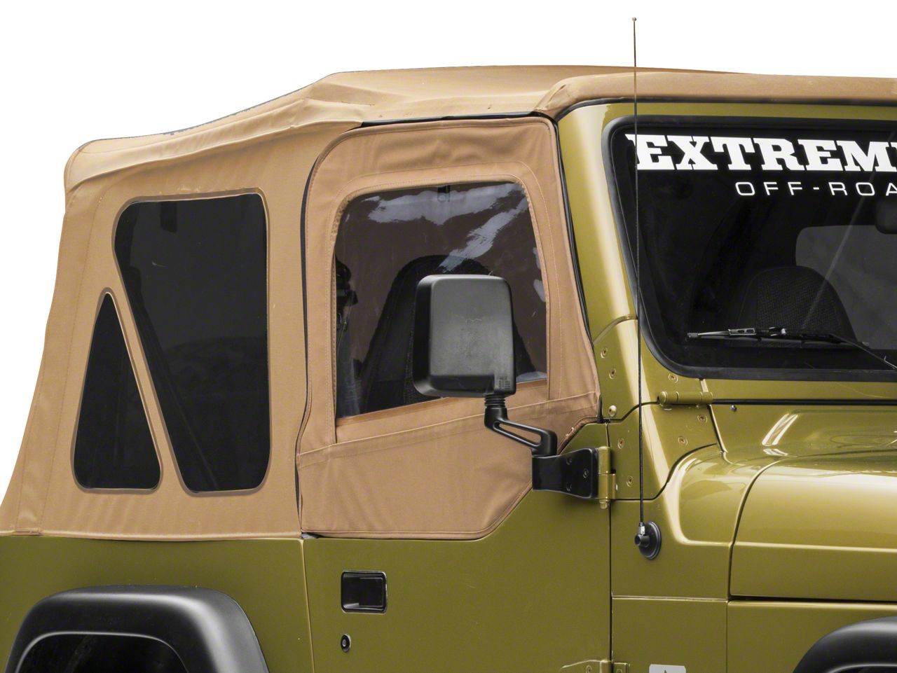 Quality Construction. Rugged Ridge's Upper Soft Door Kit makes replacing your old worn out Jeep door skins an easy process. These door skins are crafted from vinyl coated polyester that come in a spice color made to match your Jeep's soft top. This kit features DOT approved 30mil clear windows.