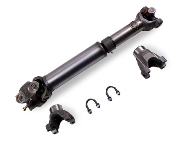 Construction. This is a double cardan joint drive, which gives you the most strength and improved operation angle, when compared to other driveshafts. It's also got upgraded tube thickness and standard slip yokes that ensure ease of installation and durability for many years. Installation is a breeze, thanks to the direct bolt-on method that doesn't require modification or drilling. This part uses Spicer brand U-joints, and it is covered by a 5-year manufacturer's limited warranty.