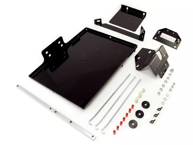 Construction. Rugged Ridge manufactures the Dual Battery Tray Kit out of steel with a black powder coat finish. Installation is easy, with no drilling required. All hardware is included in this kit, which also features all of the mounting brackets needed. Installation requires 1 to 2 hours on average. The kit is covered by a 5 year limited warranty.