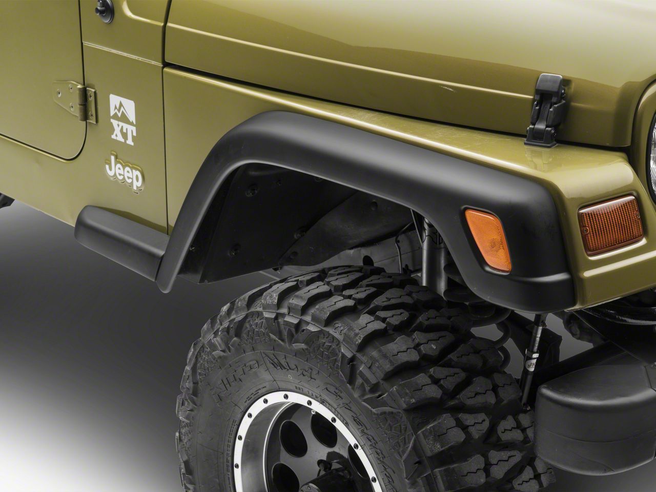 Application. This passenger side front flare extension fits 1997 - 2006 TJ Wranglers. Installation hardware is not included.