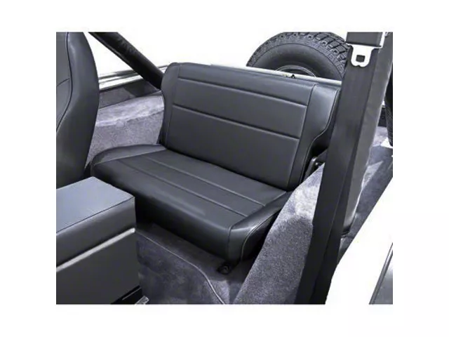 Function. The Rugged Ridge Fold & Tumble rear seat is designed to optimize the comfort and usability of your interior. When it's in the upright position, your passengers will appreciate the thick foam padding and stitched vinyl upholstery. But if you need to make extra cargo room, you can fold the seat down and use it as a shelf. Or you can tumble the entire seat forward to expand the rear cargo area. Transform the look and feel of your interior with Rugged Ridge!