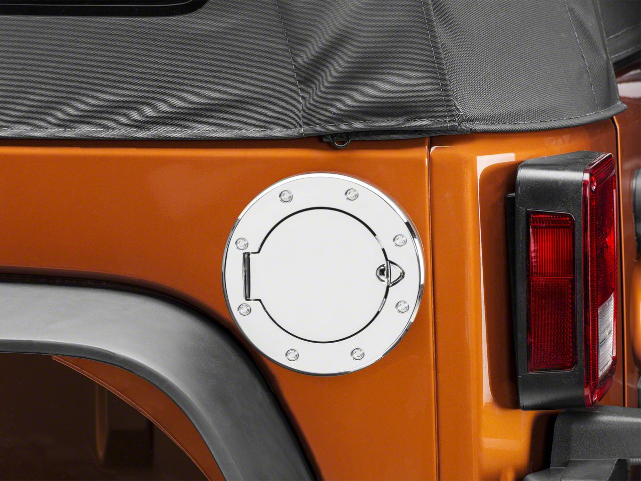 Key Features. Achieve a more rugged, industrial look for your Jeep with this high-end Non-Locking Fuel Door Cover. The non-locking design means you can fill up without any hassles. Self-tapping screws are included, anchoring the door right over the stock cap without further modifications. With an occassional washing and waxing, you can easily maintain the shiny chrome finish, which is designed to handle all kids of grunge. Installation is super simple.