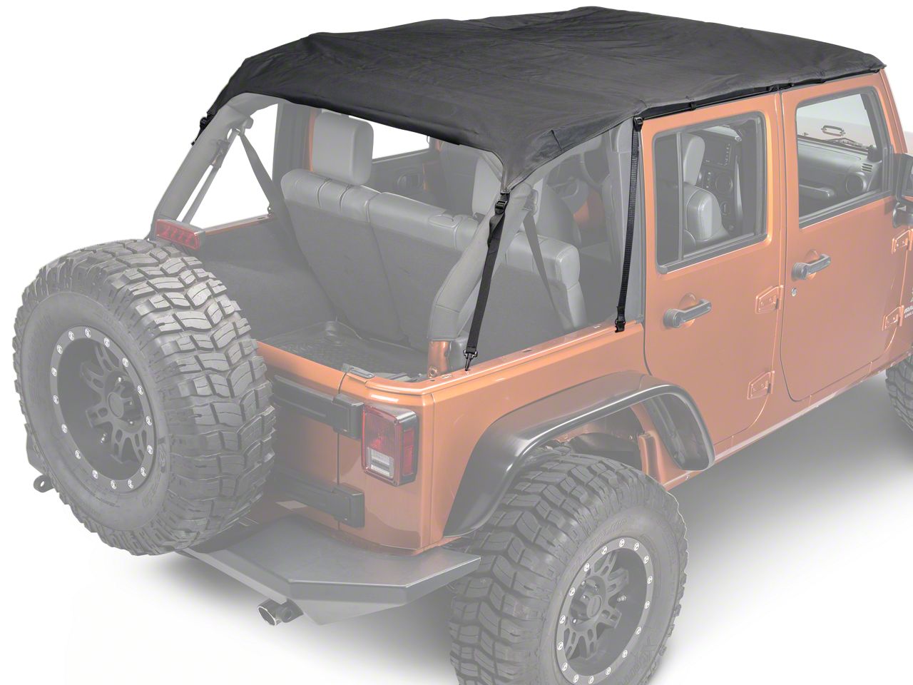 Installation.This Jeep Wrangler JK soft top features wide side hook and loop fastener straps as well as nylon tie-down straps that make attachment a breeze.