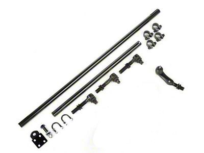 Sturdy Steering. The Rugged Ridge Heavy Duty Steering Kit with Damper is a superior solution for robust steering performance. Designed with strength equivalent to 1 ton, this kit ensures durability and reliability in demanding conditions. Featuring 7/8-inch tie rod ends, the steering kit offers exceptional stability and precise control. The inclusion of a drag link and ends further enhances the overall functionality of the system, delivering smooth and responsive steering.